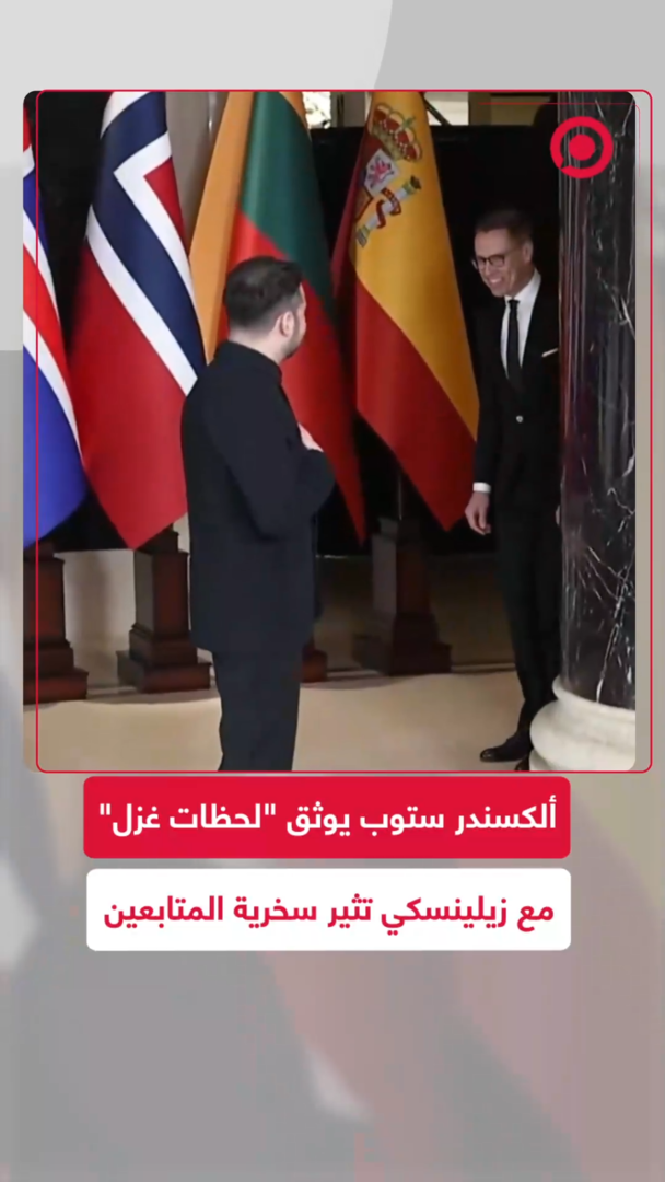 ستوب يغازل زيلينسكي.. الرئيس الفنلندي ألكسندر ستوب ينشر مقطع فيديو يوثق لحظات تودد ومزاح مع زيلينسكي حيث أثارت هذه اللقطات تفاعلا كبيرا بين مستخدمي وسائل التواصل الاجتماعي الذين وصفوا الطريقة بأنها "مبالغ بها وفيها نوع من التملق". #فنلندا #أوكرانيا #زيلينسكي #ألكسندر_ستوب #دبلوماسية